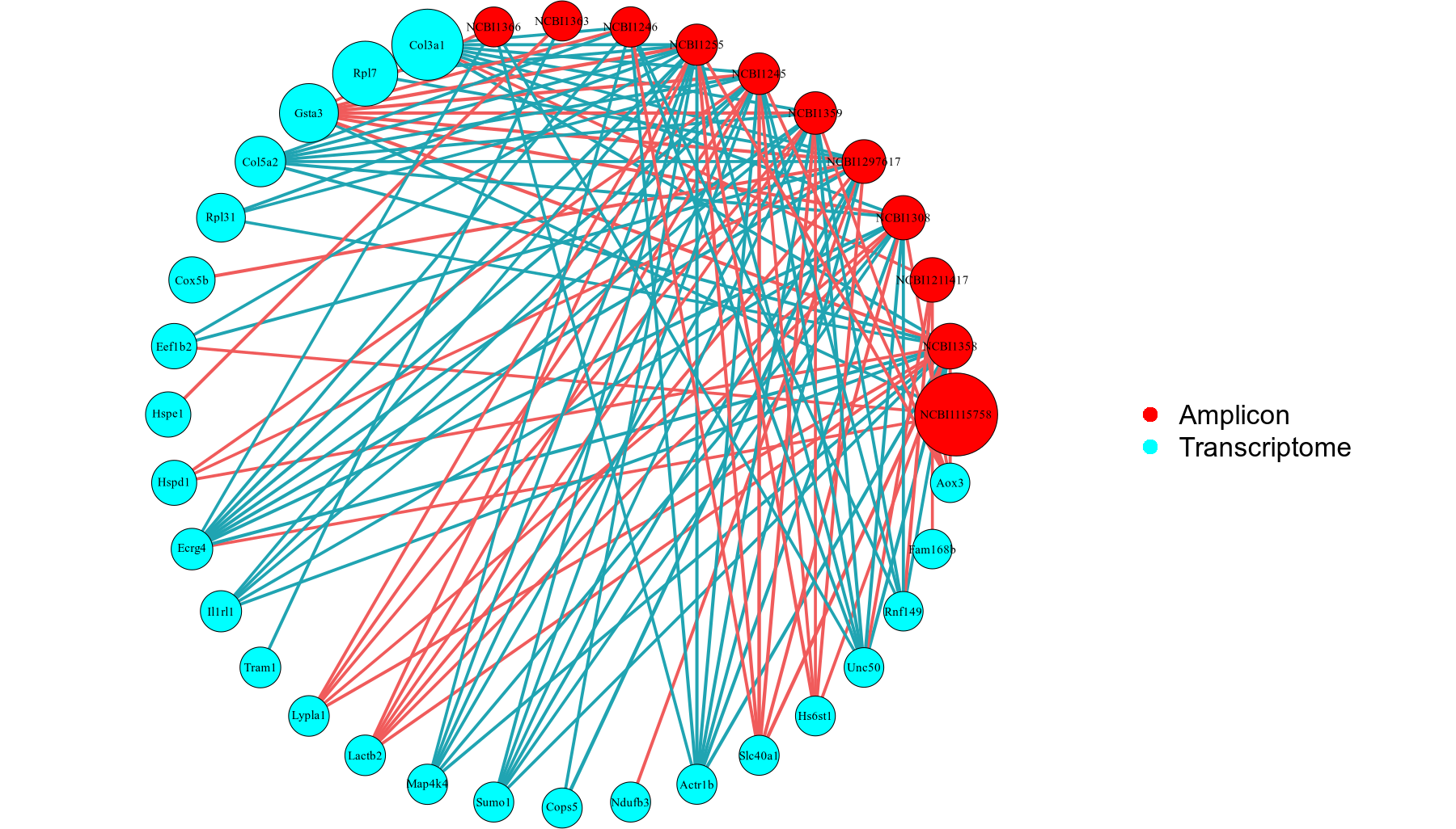 在转录组和扩增子的关联分析中,网络图和相关性热图的绘制为研究提供了直观而全面的视觉展示,有助于深入理解两者之间的复杂关系。