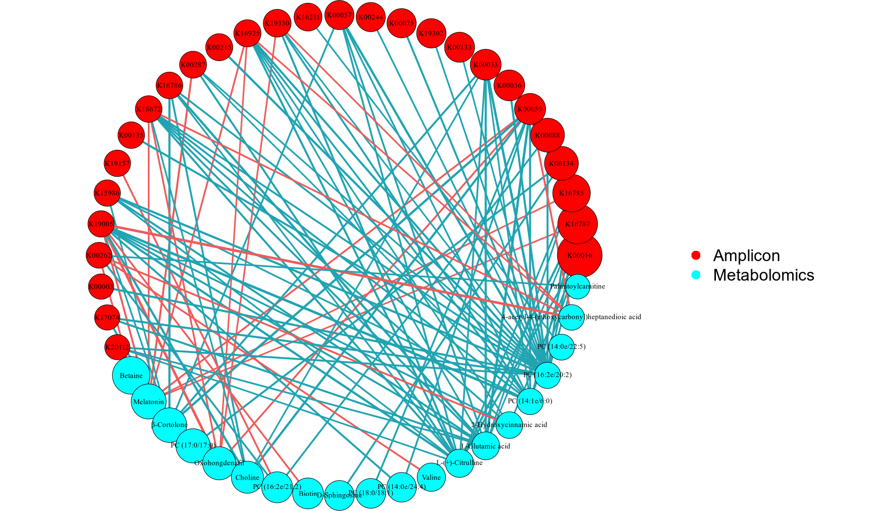 在代谢组和扩增子的关联分析中,网络图和相关性热图的绘制为研究提供了直观而全面的视觉展示,有助于深入理解两者之间的复杂关系。