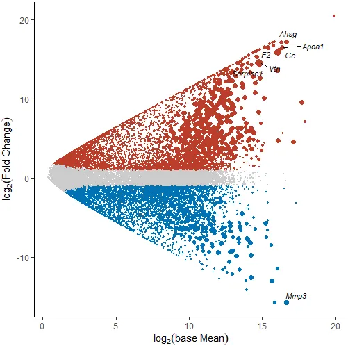 第一列为基因名称,第二列为平均基因表达量(BaseMean),第三列为对数化后的差异倍数(log2FoldChange),输入表可使用