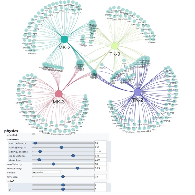网络韦恩图,可用于展示不同分组之间共有或特有的基因。输入数据每列为一组集合。
