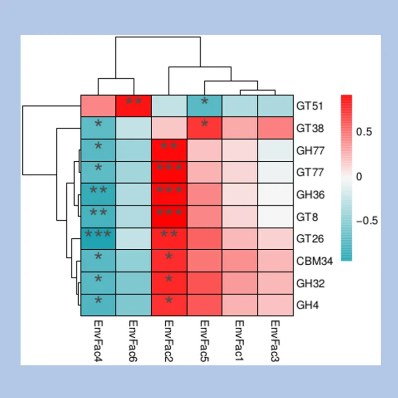 探究两组指标之间的相关性,比如细菌丰度与环境因子之间的相关性