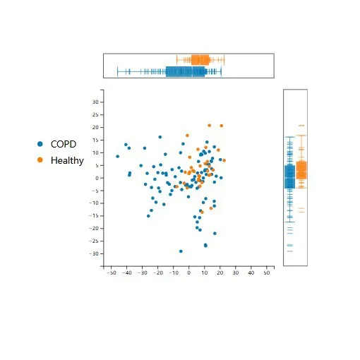 边际图,一种x轴(顶部)和y轴(右侧)边际上叠加直方图、箱线图、核密度曲线图等图表的散点型组合图表, 常用于评估两个变量之间的关系,同时展示数据分布情况; 散点-盒型图为边际图的其中一种样式。