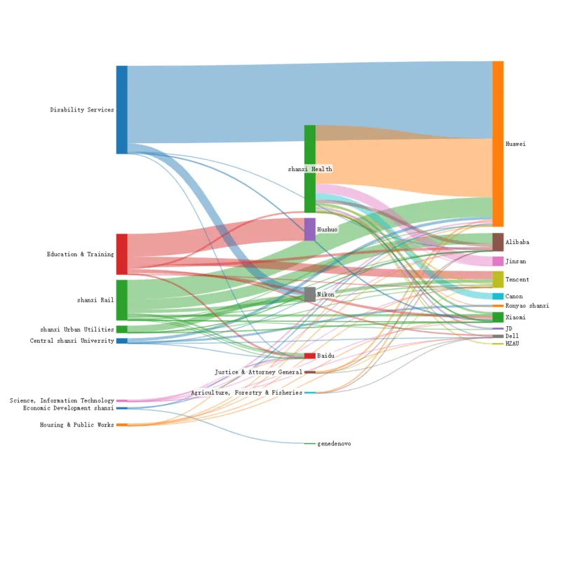 以动态桑基图展示不同层级之间的对应关系及丰度在不同样本或分组中的分布。注意:输入格式需要与示例相类似,最后一列为分类等级