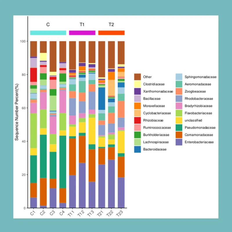 展示总丰度排名靠前的feature在不同分组中的百分占比