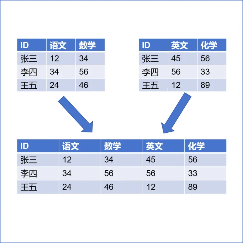 left: 只保留表格1索引值;right: 只保留表格2索引值;outer: 保留两个表格的索引值并集;inner: 保留两个表格的索引值交集