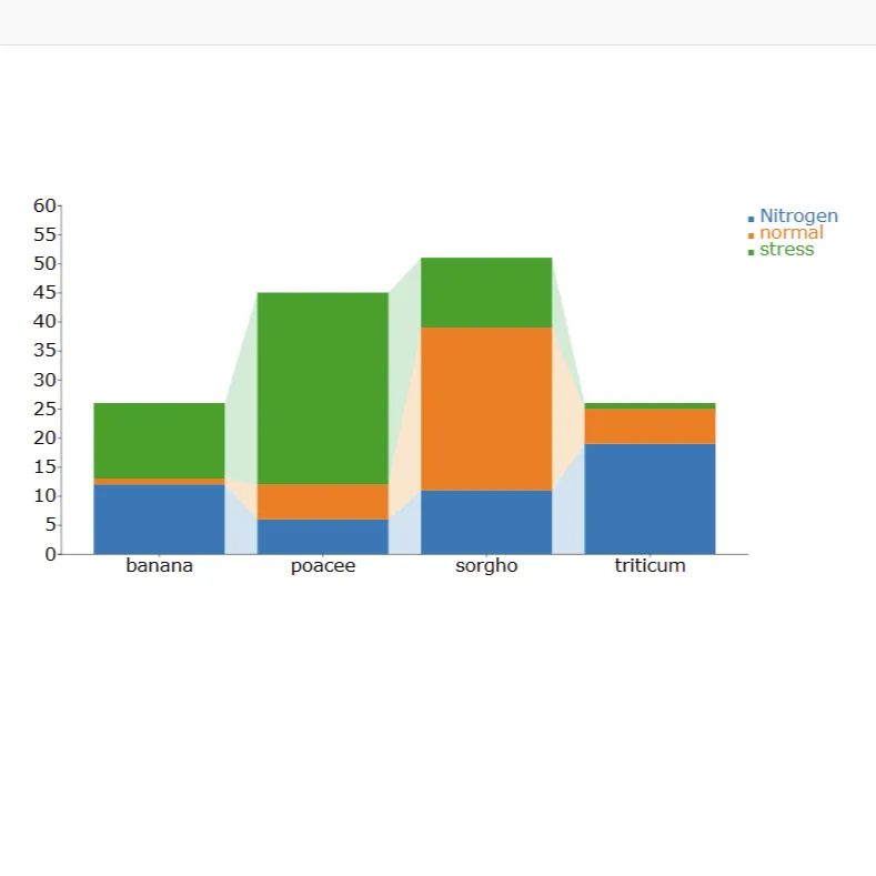 堆叠连线柱状图是堆叠柱状图和堆叠面积图的结合, 通常用于多组学中。它能够准确地展示不同元素占比的同时,也能直观感受元素在不同样本间的占比增减趋势变化