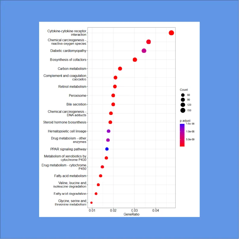 用ORA(过表达分析, R语言clusterProfiler包)研究差异表达基因主要属于哪些KEGG通路, 从而推断差异表达基因参与的生物学过程。