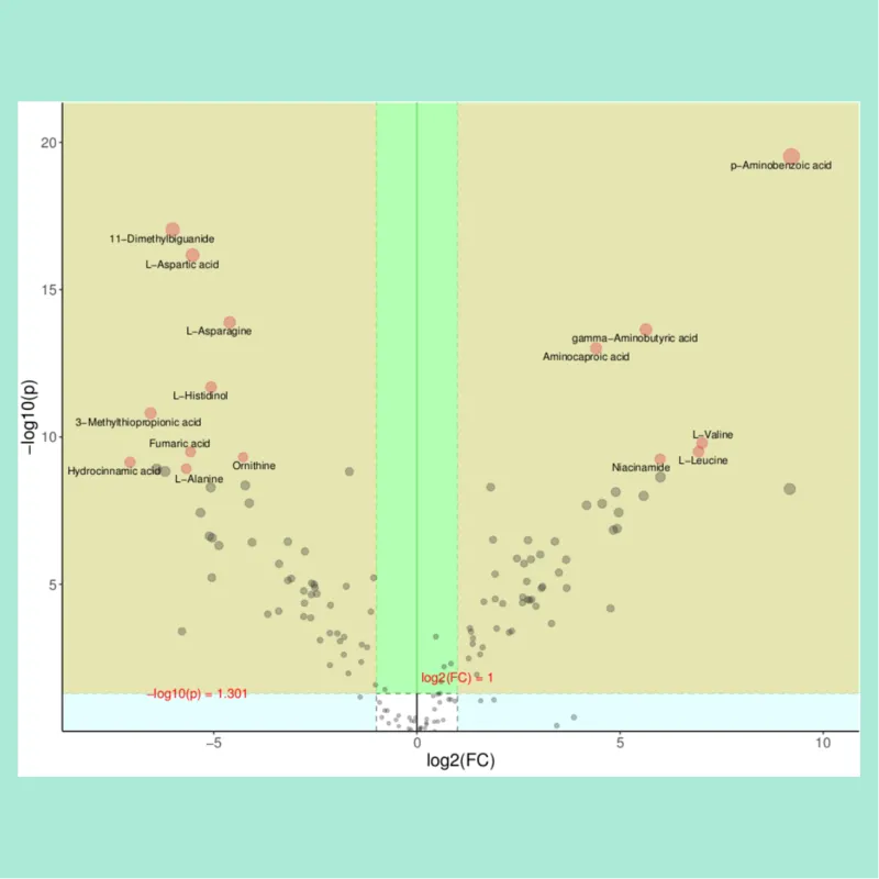 标注满足筛选条件的, 最显著(p值最小)的代谢物名称;名字太多,图片会很拥挤